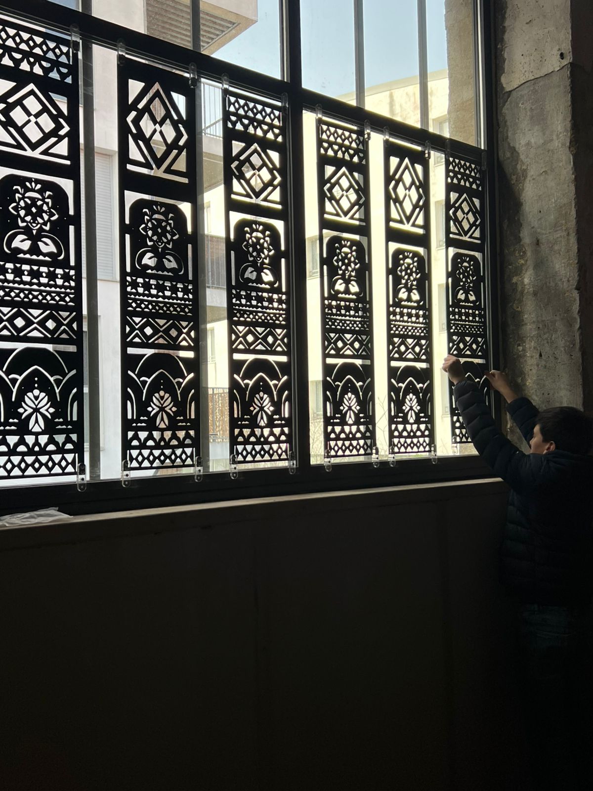 Про концепцію. Серія «Витинанки», створена в Бордо, стала продовженням цього досвіду. Місто надихнуло художницю своєю насиченістю знаками, зокрема символами сонця, води, рослин, лілій і геометричних орнаментів, які місцеві жителі часто не помічають, хоча вони присутні всюди, на шибках, огорожах і панелях будівель. Для Наталі ці образи стали відображенням домінантних стихій місцевості та способу життя міста. Робота присвячена саме такому прочитанню Бордо через мову орнаменту і пам’яті.