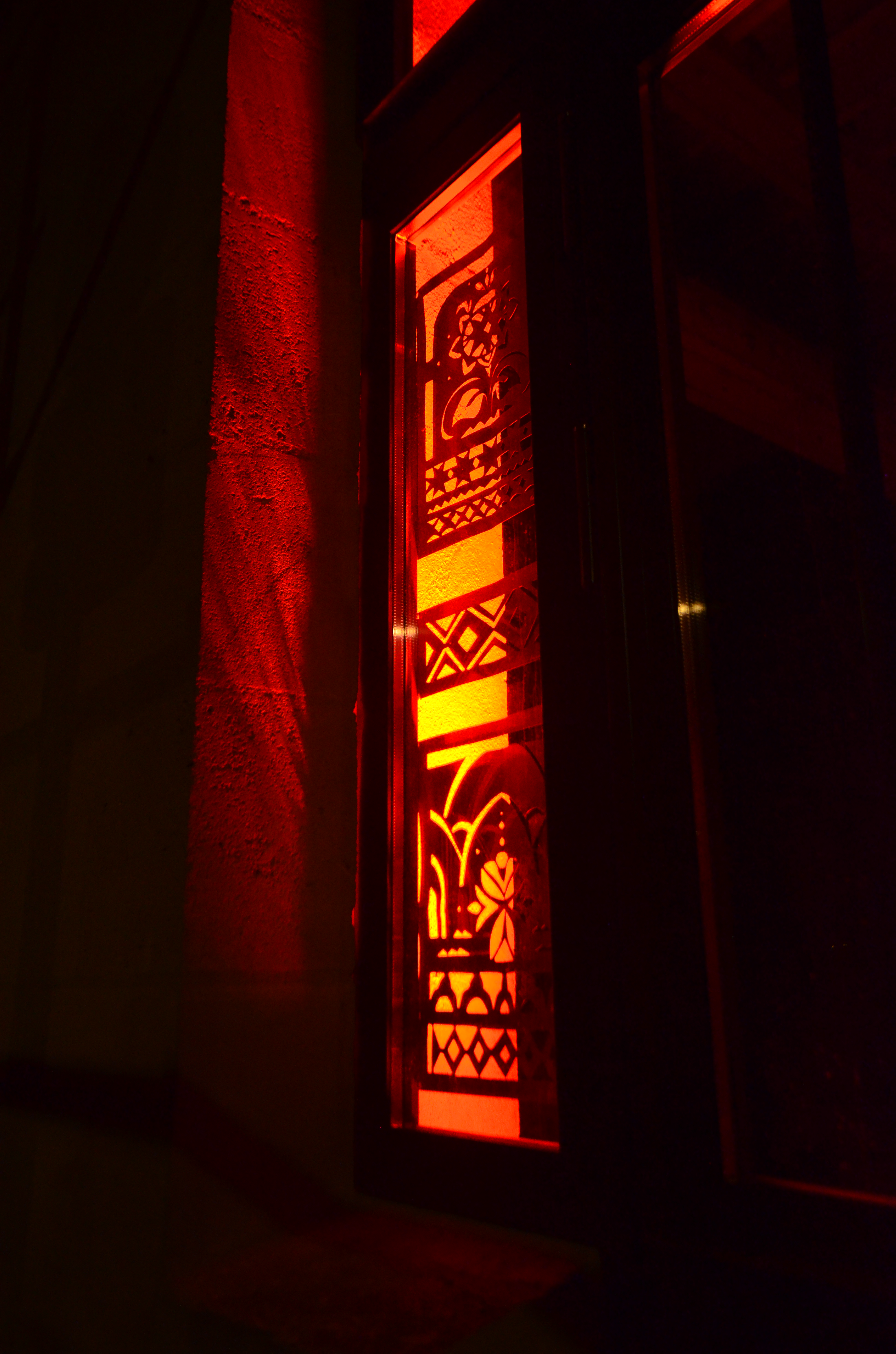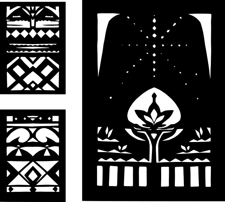 À Bordeaux, lors de la première résidence, Natalia Kurnosova a constitué un vocabulaire de formes issues de l’espace urbain : façades, volets d’échoppes, grilles de jardins. Ces motifs ont été recomposés selon la syntaxe des Vytynanky pour créer des signes originaux, pensés comme un lien symbolique entre l’œuvre, le bâtiment et la ville.